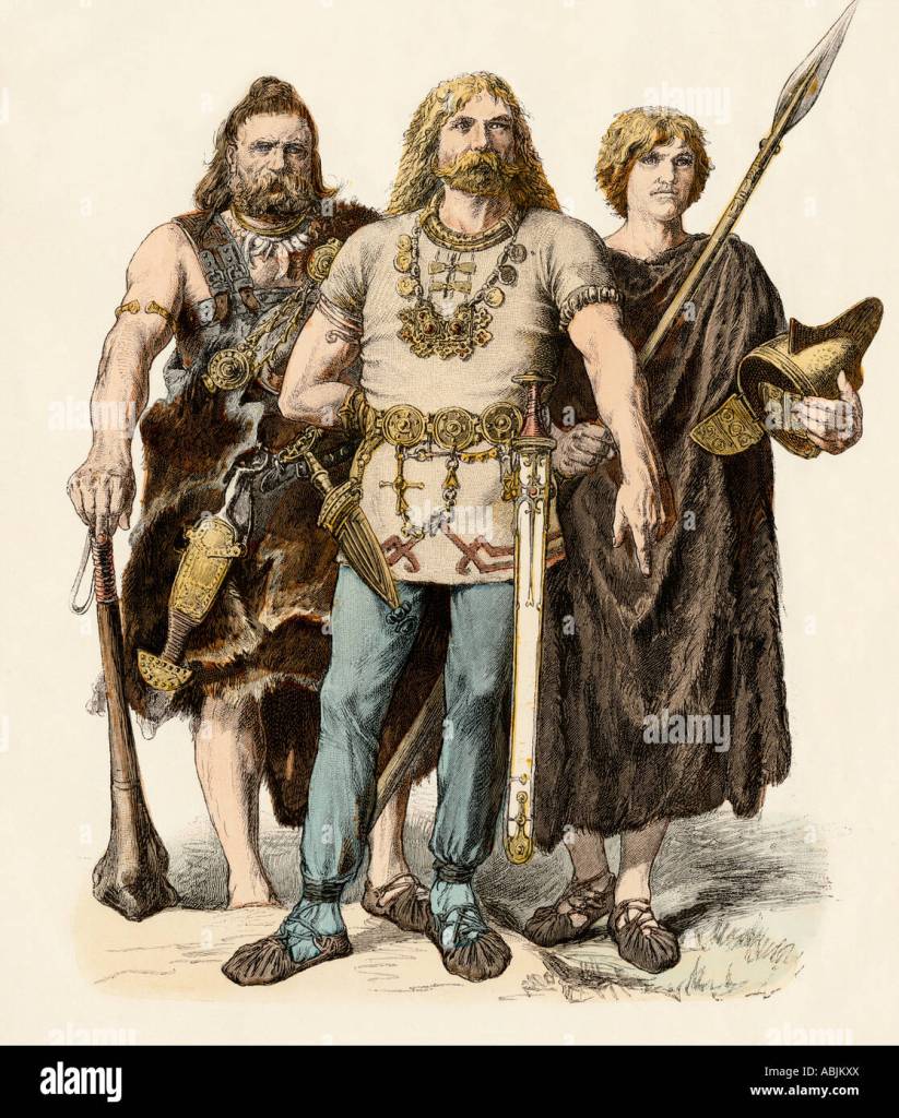 Les Germains étaient organisés en gentes jusqu’à leur migrations agressives vers le Sud. Ils sont restés peu de temps sur le territoire situé entre le Danube, le Rhin, la Vistule et les mers du Nord et Baltique, pour investir les contrées à l’Est et à l’Ouest du continent. En pleine migration, encore nomades, les Germains (Cimbres, Teutons, Suèves) ne trouvèrent de résidences fixes qu’au temps de César qui parlant d’eux, dit qu’ils s’étaient établis par gentes et parentés, même avec leur colonisation des provinces romaines conquises.