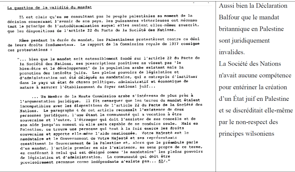 Aussi bien la Déclaration Balfour que le mandat britannique en Palestine sont juridiquement invalides.