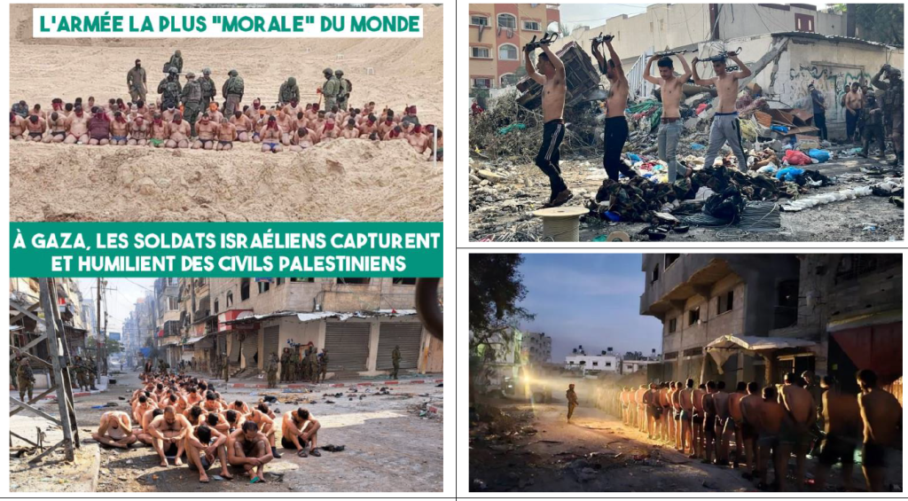 Passons outre sur le très haut niveau technologique de l’armée de terre, de l’air et de la marine sionistes qui existe depuis plus de 50 ans. Le traitement inhumain et humiliant des prisonniers palestiniens dont des enfants, est, avec une intensité décuplée, nous rappelle celui de la prison d’Abou Ghraib en Irak en 2008, signe d’une idéologie suprémaciste, une représentation basée sur une classification raciale apte à justifier un système de domination coloniale présenté sous sa forme édulcorée d’apport civilisationnel et de progrès aux populations dites «inférieures et barbares»