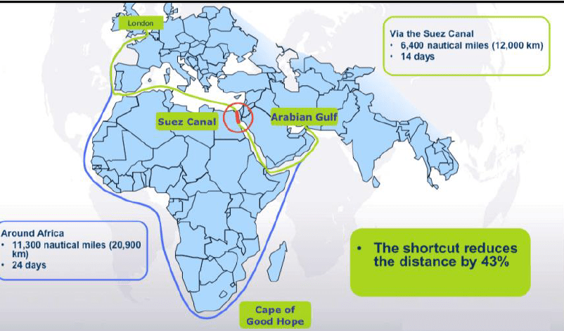 Le résultat de l’action des Houthi est probant dans la mesure où les navires des grandes compagnies maritimes en provenance du Golfe persique ne transitent plus par le Canal de Suez mais font le tour par Cap de Bonne Espérance (voir carte ci-dessous) pour atteindre l’Europe ou vice-versa. Les retombées négatives pour les économies occidentales et autres sont énormes. 10 jours de trajet et 9.000 km de différence entre les deux alternatives pour chaque trajet vont causer des dommages substantiels.