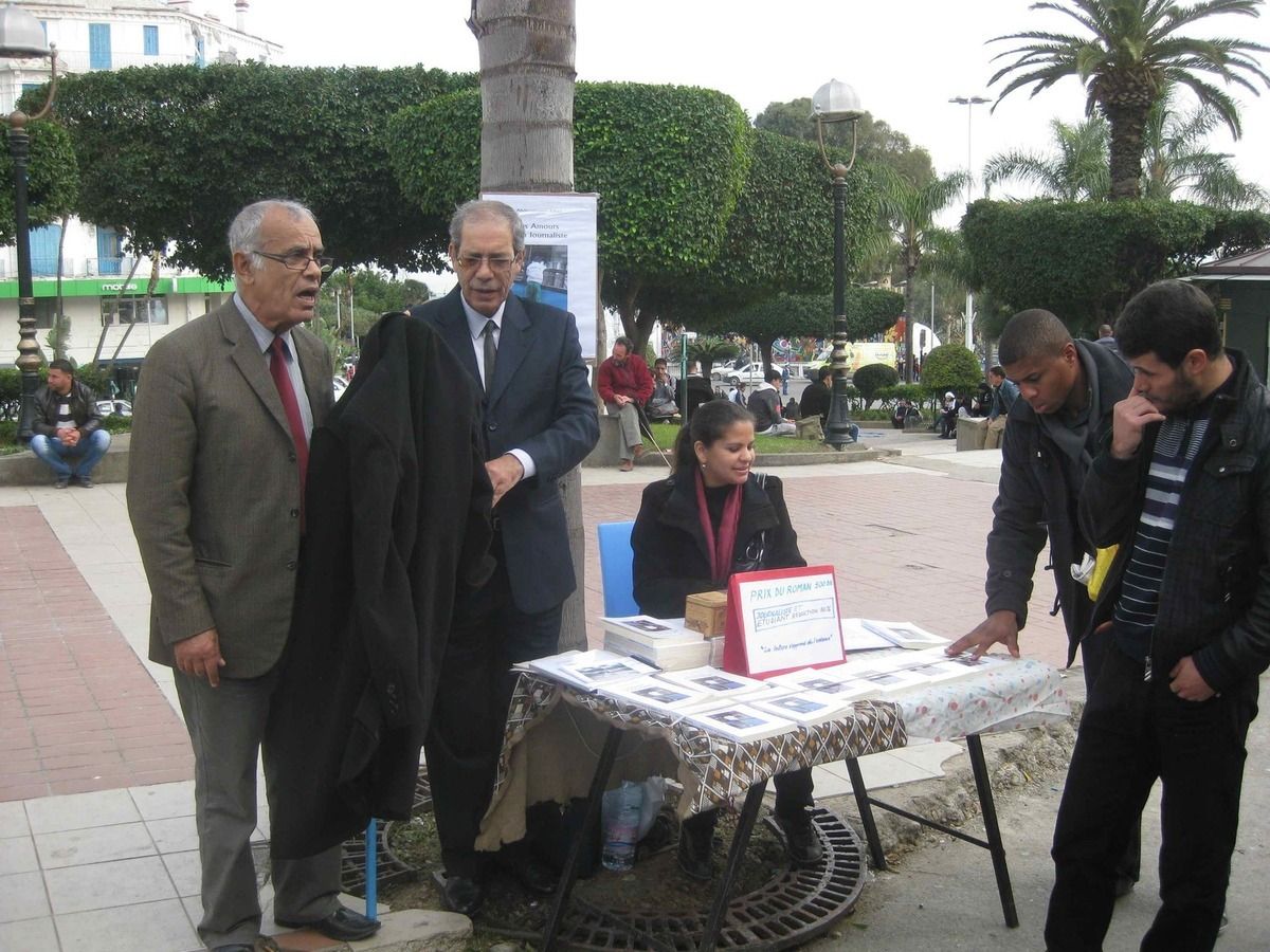 Quelque chose tourne dans la tête de Zakad …. Il lit ses poèmes à la cantonade… Il s’édite à compte d’auteur… Il vend ses livres à la criée… il ne veut plus attendre les éditeurs … Il a envie de bouger … son âge lui pèse-t-il ?… je ne pouvais pas le laisser seul… Le policier avait l’air désolé de ma déception… non, il n’y a pas de manifestants… …il me restait les livres à vendre…Là sur ce bout de place et de jardin… au milieu des bouquinistes… et ce costume, ces « Richelieu » et cette cravate pour me manifester… pour ressembler aux éclaireurs…Sid Ahmed Belarbi (16)… Ahmed Akkache(17)… Aïssat Idir(18)… Rebah Nourredine(19)… El Anka… l’épervier mon frère… à qui j’ai envie de crier au-dessus du 5 juillet Ici, c’est la vente exceptionnelle d’un livre par son auteur. Et par son ami. ..au souk improvisé du livre indigène … sur la place qu’on traversait comme des ombres écrasées, furtives et glissantes … Achetez le livre de Zakad…achetez le livre… vous ne le trouverez pas en franchise…achetez le livre…