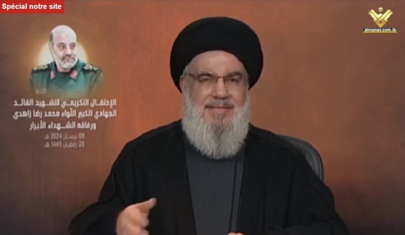 Le secrétaire général du Hezbollah sayed Hassan Nasrallah a prononcé ce lundi 8 avril un discours pour rendre hommage au général des gardiens de la révolution iranienne, Mohamad Redha Zahedi et ses compagnons, tombés en martyrs dans le raid israélien meurtrier sur le consulat iranien à Damas, le 1er avril.