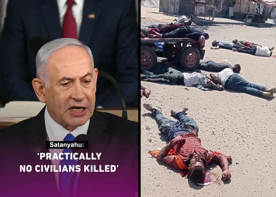 Netanyahou est devenu le dirigeant étranger le plus célébré de l’histoire des États-Unis, invité à s’exprimer devant le Congrès à 4 reprises , surpassant même le dirigeant britannique en temps de guerre, Winston Churchill. Il est une créature de Washington. Sa sauvagerie, sa monstruosité sont entièrement américaines. Comme il l’a imploré auprès de ses supérieurs américains : « Donnez-nous les outils plus vite et nous finirons le travail plus vite. » Finissons le travail du génocide.
