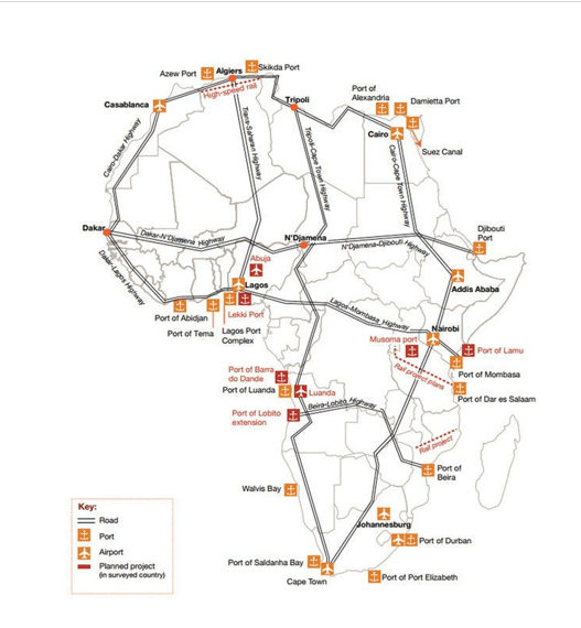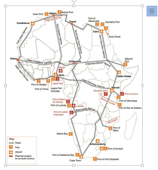 En fait, si vous regardez la carte, il va sans dire que le projet d’un corridor de transport transafricain du port de Dakar au Sénégal à Port-Soudan est demandé. Avec les routes et les chemins de fer.