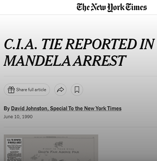 Pendant des décennies, ce n’était qu’une rumeur jusqu’à ce que le New York Times (NYT) la confirme en juin 1990, peu après la libération du leader du Congrès national africain (ANC) et combattant anti-apartheid le plus connu au monde :