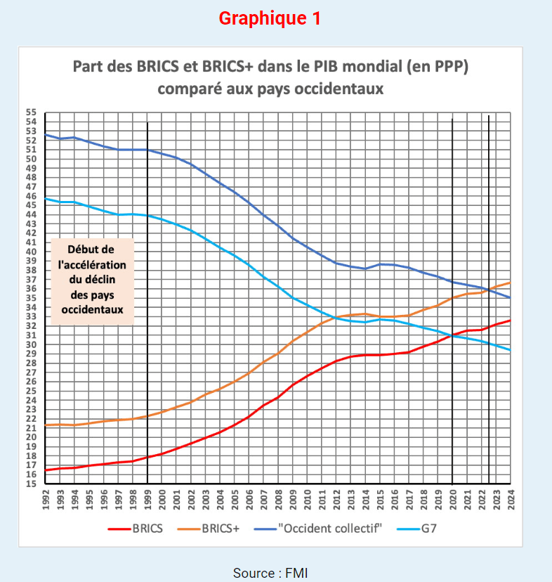L’émergence des BRICS+ symbolise l’une des possibles nouvelles structuration du monde. Le fait que les pays des BRICS+ aient été poussés à une logique de contestation ouverte du monde dominé par « l’Occident collectif », alors qu’initialement ils cherchaient juste des modifications acceptables à ce monde en dit tout autant sur la montée en puissance de ces pays que sur le manque d’intelligence des pays du G-7 qui n’ont su, et sans doute pas voulu, leur accorder la place qui leur revenait logiquement dans les institutions internationales. La logique d’affrontement actuelle est largement le produit de cette incapacité, ou de cette mauvaise volonté.
