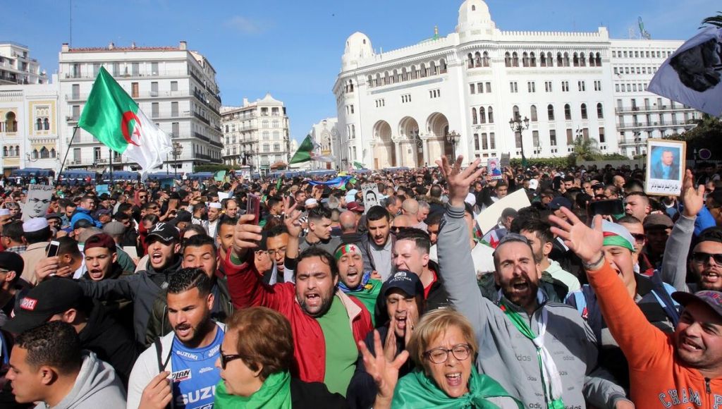 Ce grandiose sursaut populaire patriotique à caractère national, anti-néocolonial, anti-impérialiste, antisioniste(17)massif mais hétérogène et interclassiste à dominance juvénile mixte et pacifique – dans sa première phase – qui se propagea dans tous les recoins urbains du pays, l’émigration et parmi la diaspora, peu à peu se fraya sa voie en s’autonomisant relativement par rapport aux douteux initiateurs et marginalisa les prétendus leaders politiques, y compris les postulants au trône d’El Mouradia, qui s’étaient compromis avec le pouvoir, prenant le train en marche et tentant vainement de le récupérer.(18) Il préserva sa force de frappe grâce à son unité autour de l’objectif commun et consensuel principal pour faire déguerpir le noyau dur de l’alliance présidentielle constitué autour du dauphin Saïd Bouteflika, qui en fait usurpait la fonction de son frère aîné depuis son handicap.(19) Mais ce dernier manœuvra jusqu’à la fin, en résistant de toute son énergie dans sa lente agonie, modifiant sa tactique d’alliance en renouant avec l’ex-chef du D.R.S. et appelant à la rescousse l’assistance directe de l’Etat néocolonial (la France) à travers son ambassade et la D.G.S.E. qui l’avait soutenu jusqu’au bout.(20) Il était déterminé à s’accrocher à tout prix au pouvoir en faisant certaines concessions aux adversaires, même en recourant à la répression féroce par tous les moyens, en fomentant des troubles entre les manifestants et les forces de maintien de l’ordre, tentant de provoquer un bain de sang(21) et par conséquent une situation idoine à l’intervention étrangère impérialiste qui guette le moment propice.