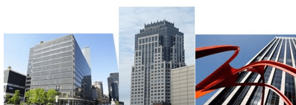 Les sièges sociaux de (de gauche à droite) Vanguard, BlackRock, Fidelity MR, State Street et Capital RM