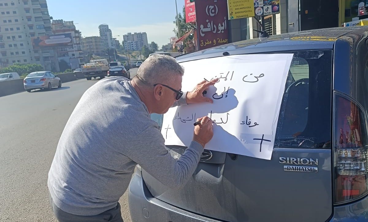 A l’aube, nous nous sommes mis en route, déterminés et résolus. Avant de partir, nous avons placé sur le pare-brise arrière de notre voiture une pancarte sur laquelle était écrit : « Du Metn au Sud : En l’honneur du sang des martyrs ».