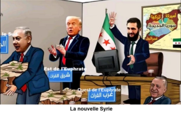 « Sans l’accord des États-Unis, la Syrie ne serait pas tombée, la Turquie et Al-Joulani ayant accepté toutes leurs conditions préalables : oublier le Golan ; couper toute relation avec le Hezbollah et l’Iran ; normaliser les relations avec Israël ; ne pas réarmer l’Armée arabe syrienne dont les effectifs ne doivent pas dépasser les cent mille recrues ; démanteler la police syrienne, détruire toute fabrication d’armes chimiques ou autres ; ne pas s’en prendre aux minorités ; accepter une solution kurde à l’irakienne [canton kurde]… »