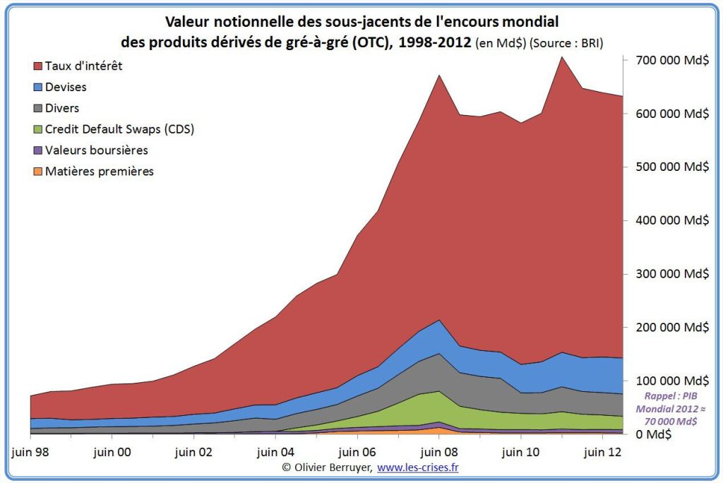 On note que la valeur de ce marché est égale au tiers de toute l’économie réelle – après en avoir atteint la moitié en 2008. Cela montre bien à quel point tout le système à été perverti.