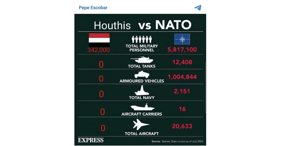 À eux seuls, ils ont perturbé la dynamique de la puissance maritime mondiale. S’appuyant sur l’expertise de leurs spécialistes, ils produisent eux-mêmes des armes… Le principal acheteur d’armes du Pentagone américain, Bill LaPlante, a exprimé son inquiétude face à la sophistication de ces armes : « Ce que j’ai vu de ce qu’Ansar Allah a fait au cours des six derniers mois est choquant. »