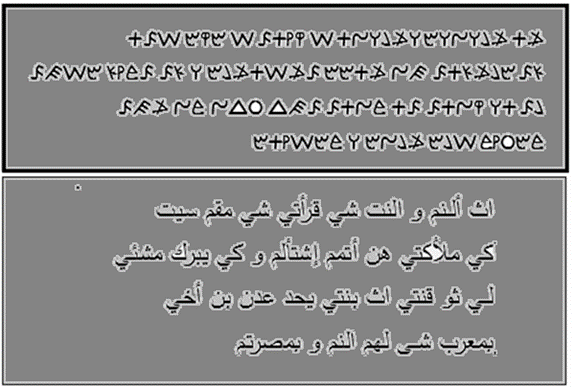 [11] Selon S. Chaker, elle serait bi-millénaire. Se reporter à son ouvrage : Textes en linguistique berbère, Editions du CNRS, Paris, 1984.