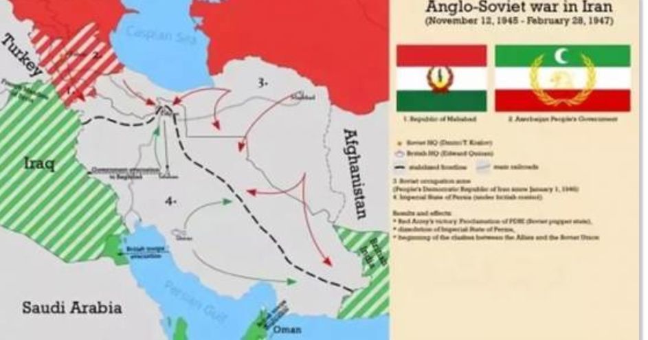 Les Occidentaux se sont aussi pratiquement limités à contrôler la bande côtière lorsque l’Iran a été soumis, et ont soutenu le Shah pour maintenir l’unité du pays – par crainte que les provinces séparatistes du Kurdistan et de l’Azerbaïdjan du Sud ne soient absorbées par l’Union soviétique, laquelle se rapprocherait ainsi dangereusement du golfe Persique