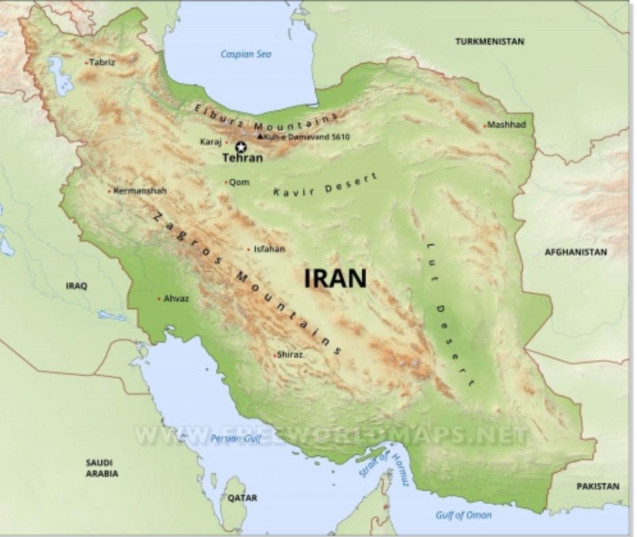 La capitale, Téhéran, est une cité colossale de type asiatique qui compte 9 millions d’habitants et représente la moitié de l’industrie iranienne. Au nord de l’Iran, la capitale est protégée par les hauts plateaux arméniens, qui sont bordés par les monts Alborz. Le point principal des monts Alborz est le volcan de Damavand, qui culmine à 5609 mètres au-dessus du niveau de la mer. Le pays est séparé de l’ancienne Russie tsariste, de l’Union soviétique et de l’actuel Turkménistan par le mur de 600 km de long constitué par les monts Köpetdag (environ 3000 m d’altitude), avec des pentes non solides, un relief karstique et de fréquents tremblements de terre. Le Köpetdag forme également une sorte de rempart qui protège le pays en son septentrion et, là encore, peu de conquérants ont réussi à le franchir au cours de l’histoire. En fait, seuls les Parthes, les Turcs seldjoukides au 11ème siècle et, plus récemment, les Mongols au 13ème siècle ont réussi à le franchir.