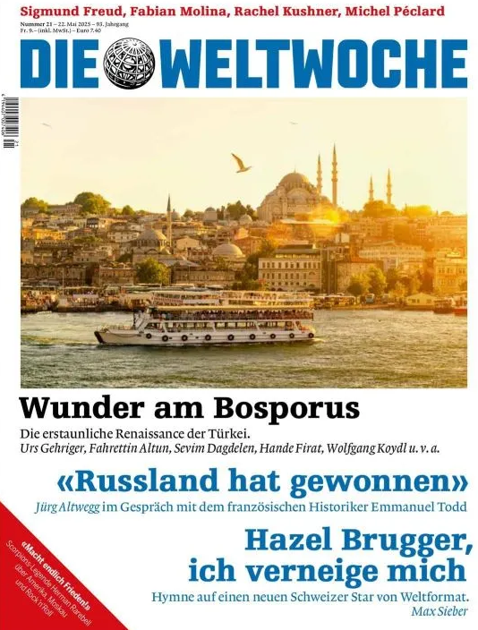 Entretien dans Weltwoche, 22 mai 2025. J’ai donné fin mai une interview à Jürg Altwegg pour le magazine suisse Weltwoche. Le titre de la publication en allemand est «La Russie a gagné la guerre». En voici la traduction.