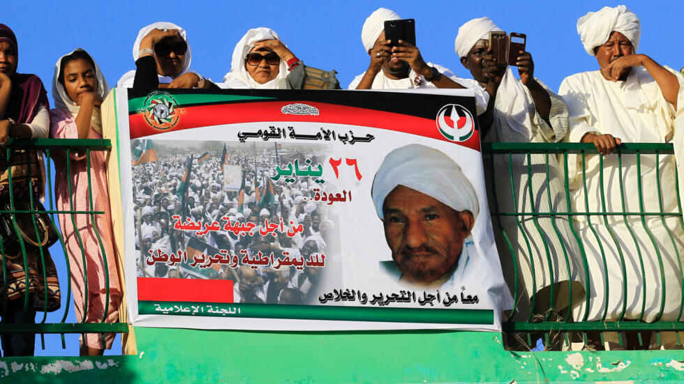 Président de l’un des plus anciens partis politiques au Soudan,Al-Oumma,il est le petit-fils de « Mahdi », héros de la révolte de 1880 contre les Britanniques. Il a occupé à 2 reprises le poste de 1° ministre, en 1966 et en 1986.Durant son 2°mandat, il a été destitué par Béchir. Appelant au « djihad civil » contre le régime, Mahdi a été 8 fois incarcéré avant de s’évader en 1996 et devenir chef de l’opposition en exil, appelant les membres de son parti à manifester et « le peuple soudanais à intensifier les protestations » contre le régime.